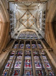 Highlights of Paul’s tour included: the dragons, ancient and incongruous but which, once he had mentioned them, we kept noticing everywhere, the vastness of the space and, of course, the fantastic windows – certainly the newly restored East window and the Five Sisters window, which, with five lancets, is the largest expanse of 13th century grey and green “grisaille” glass in the world and which they hope to be able to afford to restore one day. The very knowledgeable guide was, with a flashlight, able to show areas not usually seen, such as the detail on the bosses on the roof and the “semaphore saints” above the West door – a new addition from 2004 showing that, even in an ancient building, they can reflect modern tastes and times ( perhaps a lesson here for some NT properties?)